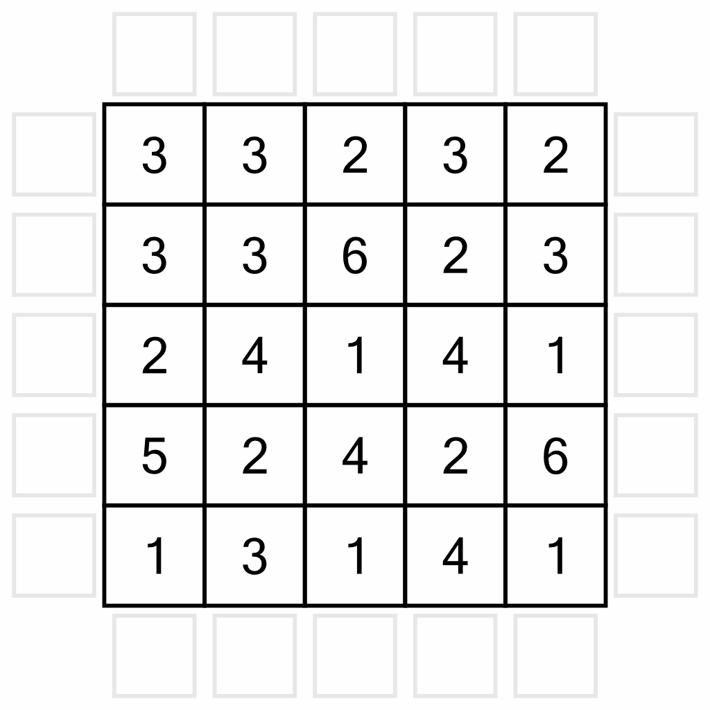 Your task is to place arrows in the empty boxes around the grid in such a way that each box contains a single arrow that points to at least one number in the grid. The numbers tell you how many arrows point to that cell.